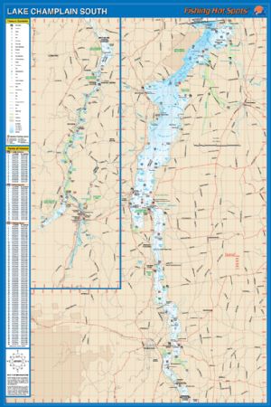 Store » Lake Maps » Lake Champlain (South Section), New York/Vermont Waterproof Map (Fishing Hot Spots)